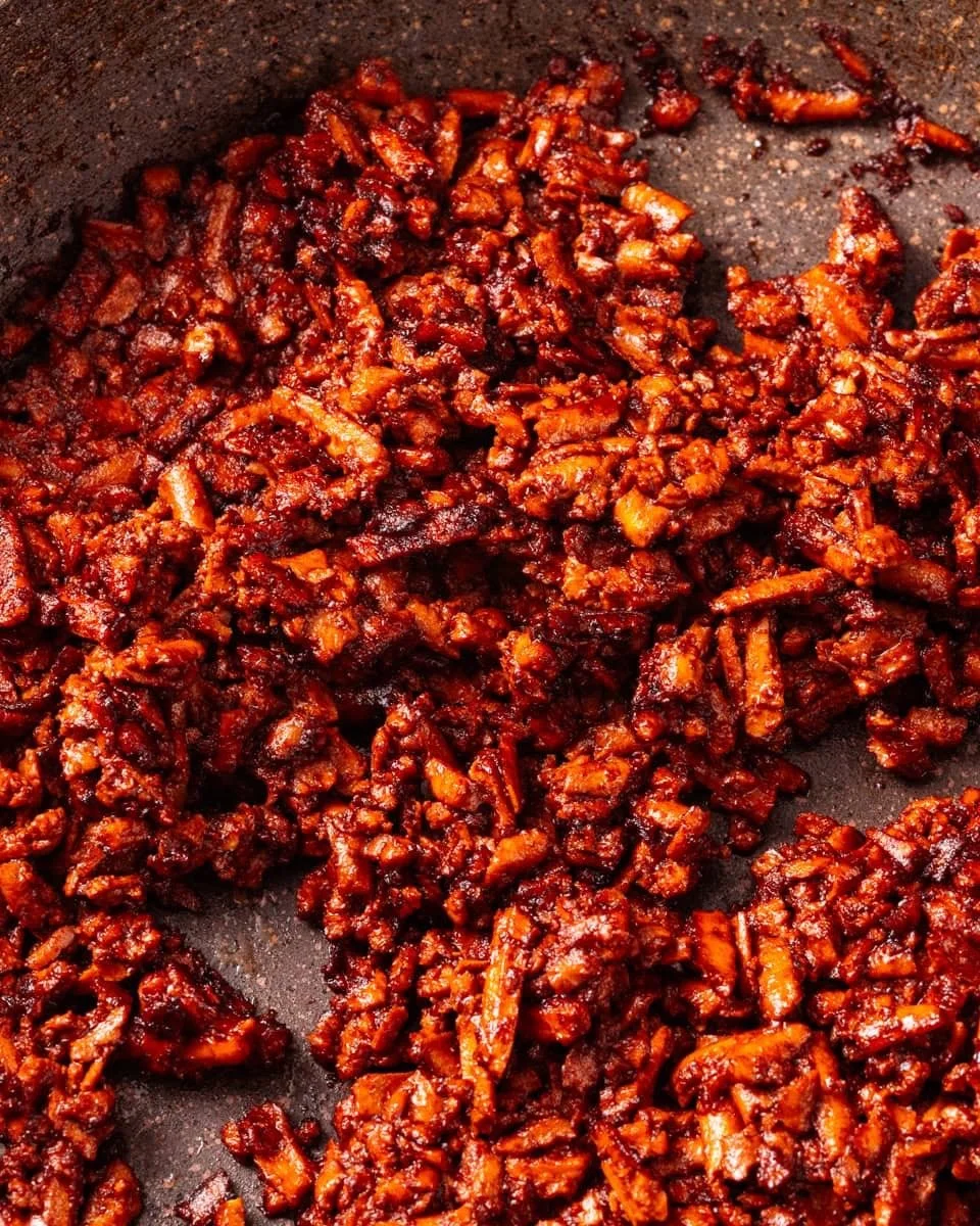 Herzhaft gewürzter, gebackener Tofu als vielseitiger Fleischersatz – perfekt für Wraps, Bowls oder eine vegane Bolognese.